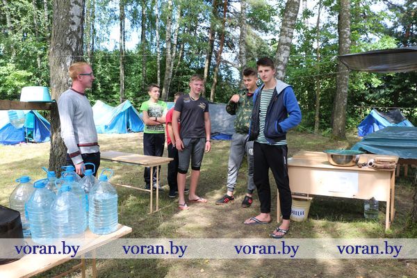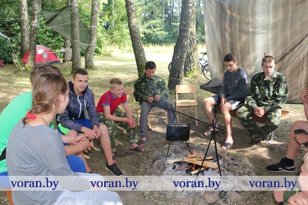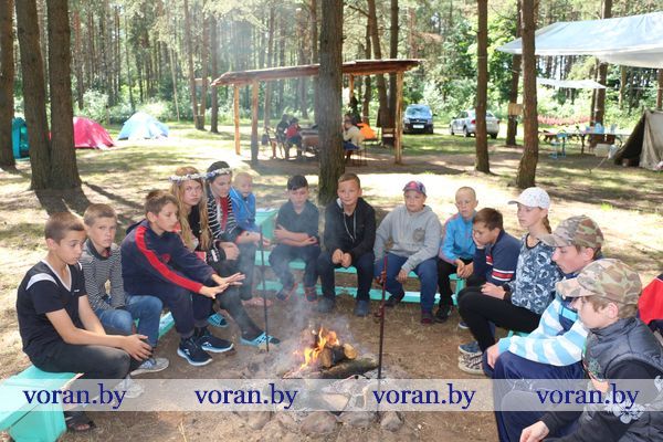 Четыре десятка школьников отдыхают на лоне природы. Палаточные городки расположились в лесных массивах, где на девять дней к звукам и запахам леса примешались детское многоголосье и пахучий дым костра. Он здесь не гаснет, за этим неусыпно следят сами ребята. Костер в палаточном лагере — это источник тепла и любимое всеми место вечерних встреч, когда подводятся итоги дня. А еще лучшее средство от комаров, которые, по отзывам детей, им здесь не надоедают.
