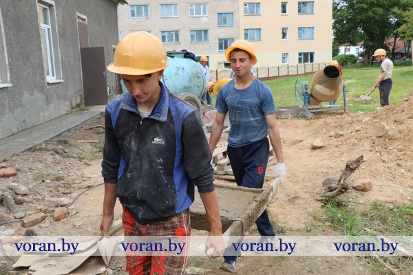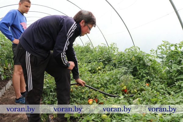 Первая часть дня посвящается трудовой деятельности. Часть юношей и несколько девушек под руководством мастеров А.В. Нарбут и Ч.С. Болондя трудятся в теплицах и на огороде. На их плечи ложится уход за цветами, помидорами, капустой, перцами, огурцами, луком, чесноком. Кстати, урожай в этом году неплохой. Съедобная продукция идет не только на обеденный стол, но и пользуется спросом у покупателей в собственном магазине колледжа. Ребята, имеющие навыки строителя, задействованы в текущем ремонте зданий колледжа, в частности, клуба. Остальные — на уборке и благоустройстве территории. Во второй половине дня и по выходным педагоги С.Л. Вашкевич и О.Я. Мокрицкая организовывают различные развлекательные мероприятия: просмотр кинофильмов, встречи с интересными людьми, спортивные турниры и соревнования, конкурсы, экскурсии и многое другое… Вот недавно, вооружившись сухпайком, ребята ходили в поход в Барташуны на место гибели Героя Советского Союза А.И. Канарчика, побывали на конеферме в Дворище. Вечером отдыхающие отправляются домой, те же, кто живет далеко, остаются в общежитии колледжа.