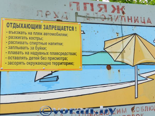 — Все рекомендации выполнил полностью только арендатор пруда д. Полипница В.Ч. Бурблис, к нему нет никаких претензий, — прокомментировала итоги мониторинга заместитель прокурора Вороновского района Л.К. Сазон. А вот к остальным есть вопросы. К примеру, арендатору пруда д. Парубишки В.Т. Бобину по итогам проверки выдано предписание. Ему необходимо установить на водоемах таблички, информационный щит, буйки и отремонтировать и покрасить кабинки для переодевания. Вынесено предписание и Вороновскому РУП ЖКХ. Специалисты предприятия должны были навести порядок на пляже в г.п. Вороново: обкосить траву, покрасить и привести в порядок кабинки для переодевания.