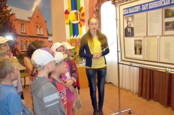 Особенно понравились организованные для нас воспитателями и местным хозяйством экскурсии. Впечатлил мини-зоопарк в Беняконях ксендза Станислава Лабана. Особое удовольствие получили от того, что могли погладить страусов, понаблюдать за повадками птиц. С творчеством Адама Мицкевича, его жизнью нас познакомили ребята-экскурсоводы музея Беняконской школы (на снимке). А в усадьбе Путткамеров в Больтиниках история будто бы сама «открыла» для нас двери. Здорово было побывать в месте, где проводились балы, где бывал великий поэт. Море брызг, водные процедуры ждали нас в аквапарке в Озерах. А в зоопарке в Гродно мы продолжили, уже начатое ранее в Беняконях, знакомство с животным миром.