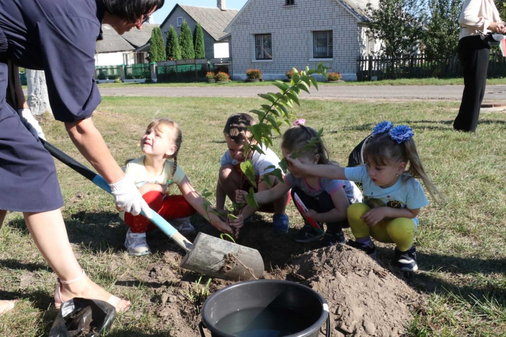 Дружно, с хорошим настроением гости поселка и жители Радуни укореняли дейцию. В период цветения она напоминает гортензию — кустарник усыпан крупными нежными цветами. Депутаты, школьники, медики, аграрии — каждый оставил добрый след на радунской земле. Самые юные участники акции — воспитанники Радунского СПЦ 3-5 лет — также с удовольствием позировали возле своего саженца для памятного фото.
