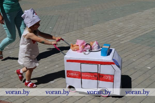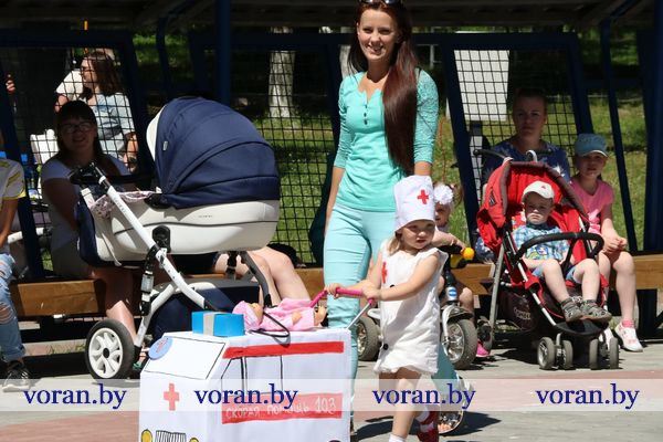 Важно шествовали «маленькие мамочки» — Арина Граблис и Валерия Сальманович. В небольших, искусно украшенных колясочках, которыми они бережно управляли, мирно «спали» доченьки-куколки. Под чутким взором родителей Юлии и Павла Гайдисов зажег крутой ди-джей Егор. «На скорой помощи» прибыла Арина Махало вместе с мамой Дианой. Сказочную тематику для своих колясок выбрали Маргарита Мантурова вместе с детьми Полиной, Глебом и Софией, которые интересно обыграли «Дюймовочку», Жанна Сальманович с сыном Маратом — «Чебурашка и Крокодил Гена». А также маленький король Денис Граблис с мамой Ириной. Последние три семьи были признаны победителями мероприятия.