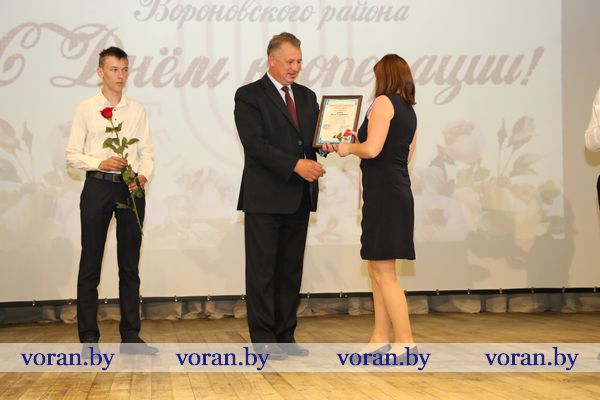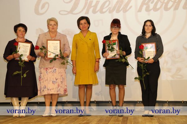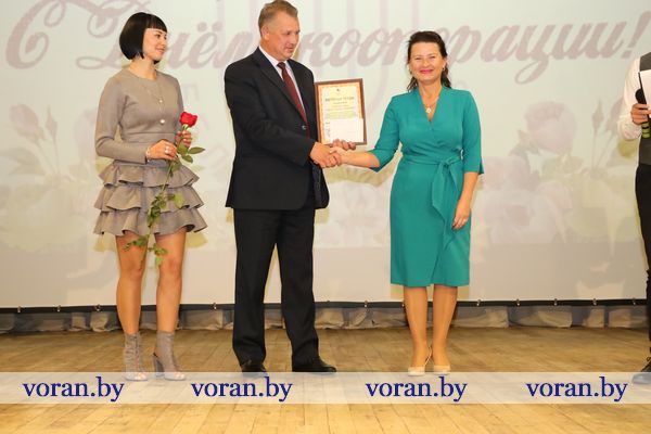 Во время торжественного мероприятия кооператоры принимали поздравления и чествовали лучших из лучших. Большим был список награжденных работников различных подразделений филиала. Открыл его кладовщик Андрей Пискун, которому была объявлена Благодарность председателя Гродненского облисполкома. Грамотой Гродненского облсовета депутатов награждена главный экономист филиала Марина Залога. Ведущий бухгалтер Елена Жалис получил из рук директора филиала Валерьяна Андрукониса Почетную грамоту Гродненского облпотребобщества и обкома профсоюза. Таких же наград удостоены продавец минимаркета «Родны кут» г.п.Вороново Анна Пашковская и водитель Валерий Вайтонис.